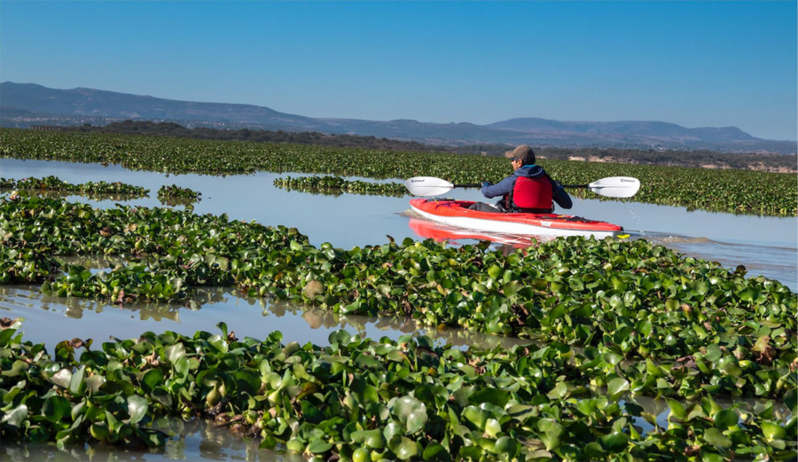 Celaya, Gto., 30 de marzo de 2026.- El Gobierno de la Gente en conjunto con el gobierno federal y municipios suman esfuerzos para desarrollar acciones de saneamiento para el control del lirio acuático en la presa Ignacio Allende, ubicada entre los municipios de San Miguel de Allende y Dolores Hidalgo.